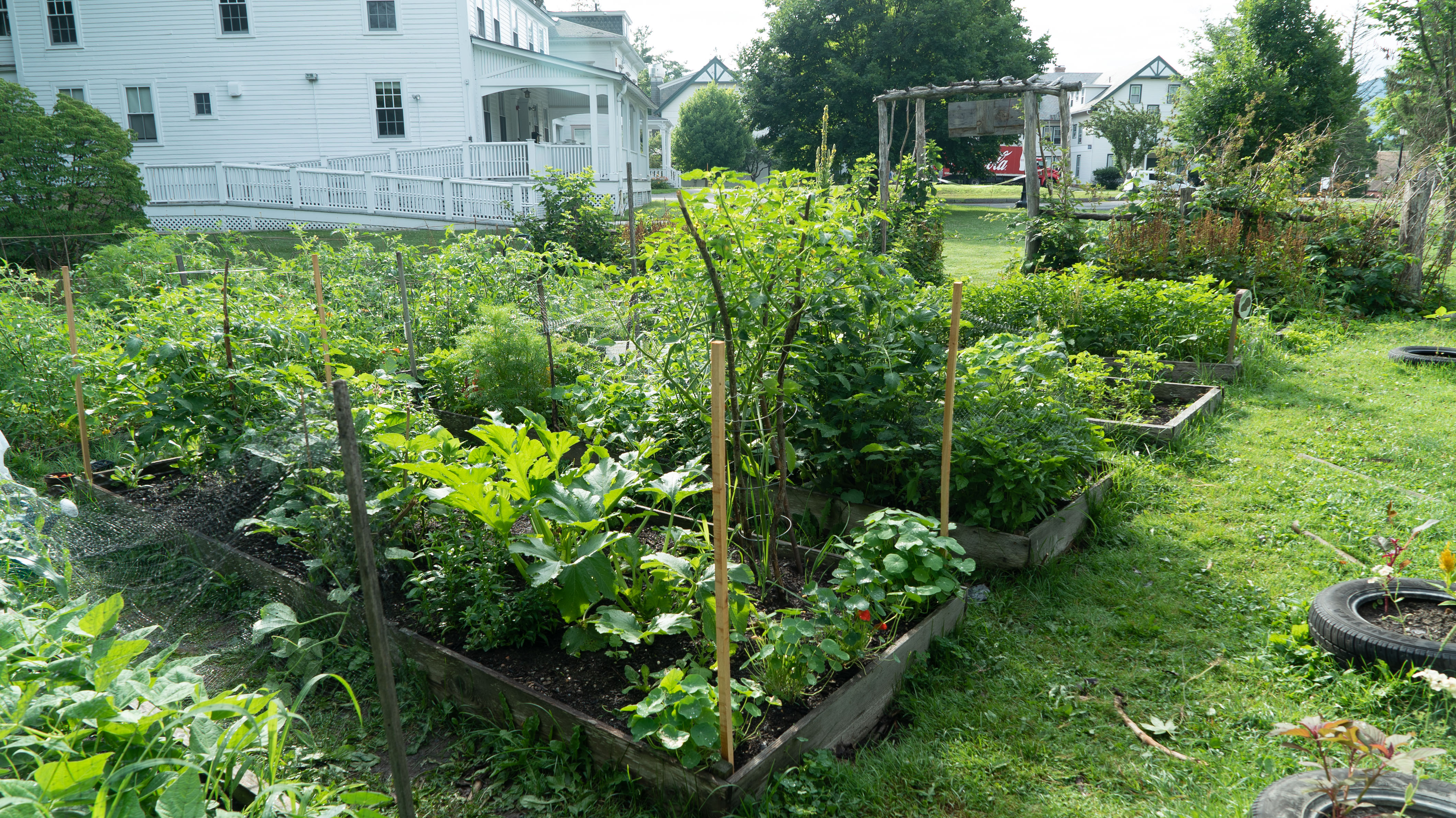A 2000 sq ft garden, planted with over seventy kinds of seeds including varieties of pole beans, corn, squash, tomatoes, sunflowers, south and east asian greens, carrots, radishes, potatoes, nasturtiums, calendula, zinnia, peppers, eggplant, cucumbers, leeks, and herbs.